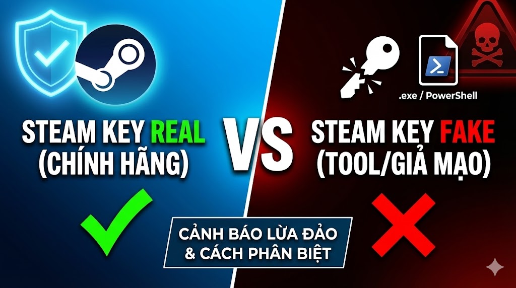 Gần đây, thị trường game Việt Nam xuất hiện hàng loạt quảng cáo bán Steam Key với giá cực rẻ (chỉ 100-300k cho những game AAA trị giá hàng triệu đồng). Tuy nhiên, đằng sau mức giá hấp dẫn này là một chiêu trò lừa đảo tinh vi đang khiến hàng nghìn game thủ mất tiền oan. Bài viết này sẽ giúp bạn cách nhận biết chính xác Steam Key chính hãng và Steam Key giả mạo, tránh sa vào bẫy của những kẻ lừa đảo.