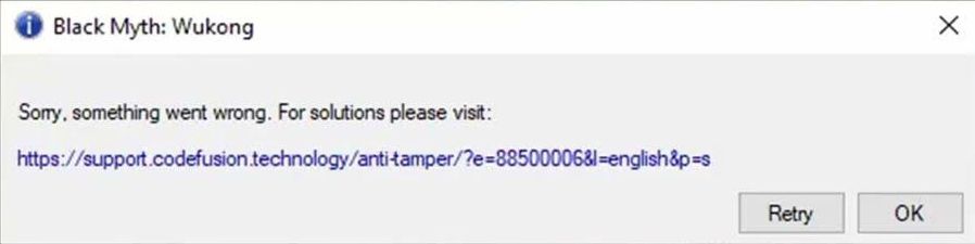Bạn đang hào hứng chuẩn bị vào chiến Black Myth: Wukong, hay Stellar Blade thì đột nhiên màn hình hiện lên thông báo lỗi “Sorry, something went wrong, for solutions please visit…” kèm theo một đường link lạ dẫn đến