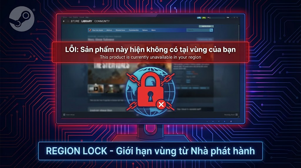 Khi bạn truy cập Steam Store Việt Nam và tìm kiếm một tựa game nhưng thấy thông báo lỗi này, điều đó có nghĩa game đã bị chặn tại quốc gia của bạn do nhà phát hành thiết lập giới hạn vùng (region lock). Đây không phải lỗi kỹ thuật mà là quyết định kinh doanh từ phía nhà phát triển hoặc nhà phát hành.