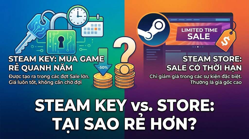 Giá rẻ hơn Steam Store không có nghĩa là scam lừa đảo, mà đơn giản là bạn đang tận dụng thông minh cơ chế phân phối key Steam của thị trường. Miễn là bạn mua key chính hãng từ nguồn đáng tin cậy, game của bạn sẽ được cập nhật đầy đủ, chơi online mượt mà và không bao giờ gặp rủi ro.