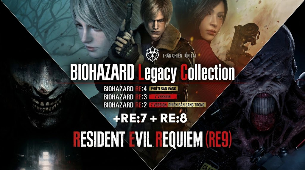 Không chỉ gói gọn trong ba siêu phẩm Remake xuất sắc nhất của Capcom (RE2 Deluxe, RE3 + Resistance, RE4 Gold Edition), combo Resident Evil hiện đã cập nhật tựa game mới nhất trong Serial: Resident Evil Requiem (RE9).